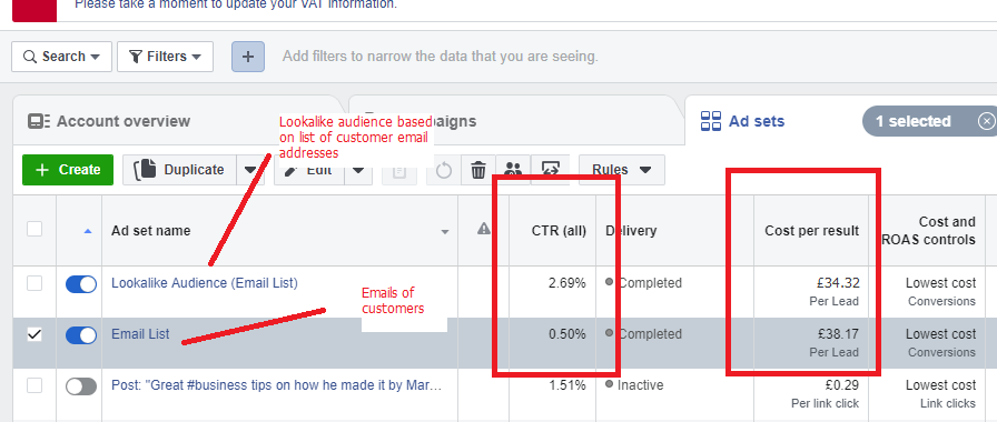 Lookalike audience performing better than own data.